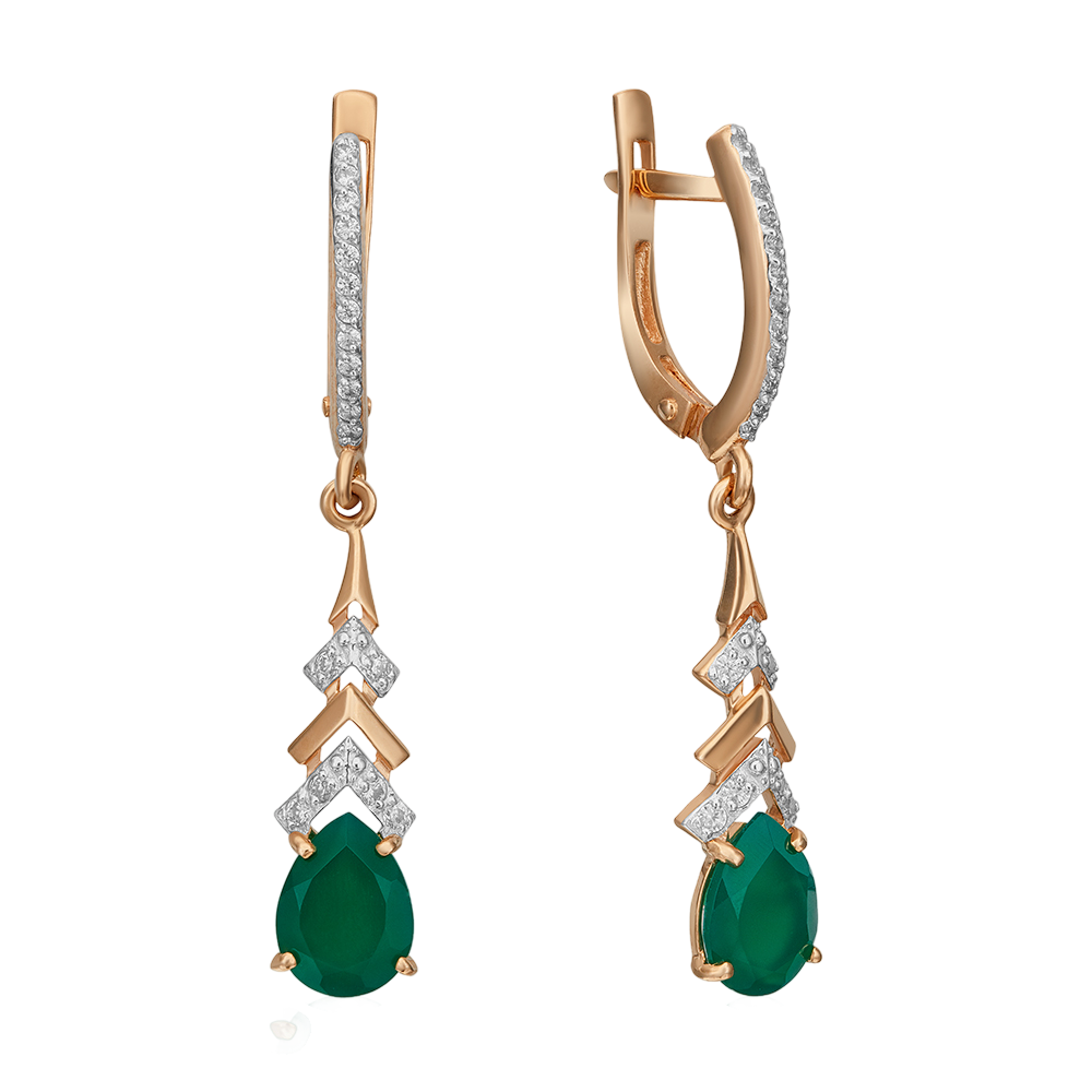 Ohrhänger mit grünem Chalzedon und Zirkonia aus russischem Rotgold 585
