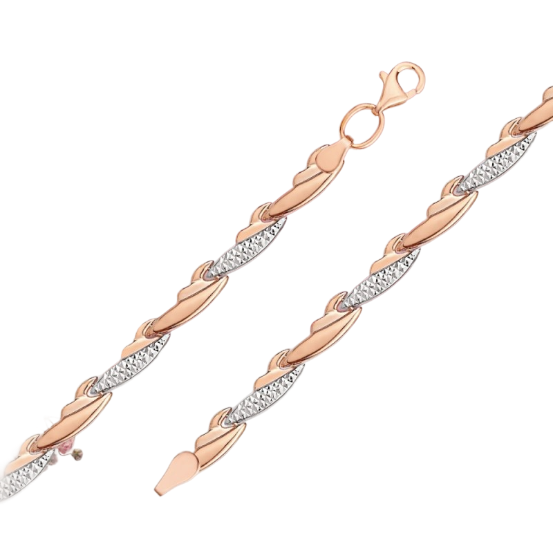 Комбинированное золото: Гармоничное сочетание красного и белого золота подчёркивает изысканность украшения и придаёт ему элегантный блеск. Такие изделия неизменно привлекают внимание.