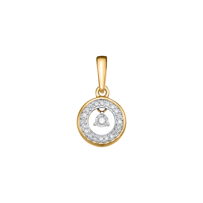 Круглая оправа из жёлтого золота гармонично подчёркивает сияние бриллиантов и эффектно выделяет центральный камень. Подвеска станет элегантным акцентом образа и подчеркнёт женственность и вкус своей обладательницы.