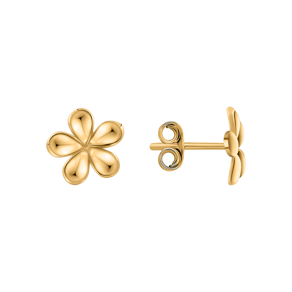 Эти привлекательные серьги-пусеты из жёлтого золота 585 пробы выполнены в изящном цветочном дизайне с мягко изогнутыми, полированными элементами. Гладкая блестящая поверхность красиво отражает свет, придавая украшению женственный и утончённый вид.