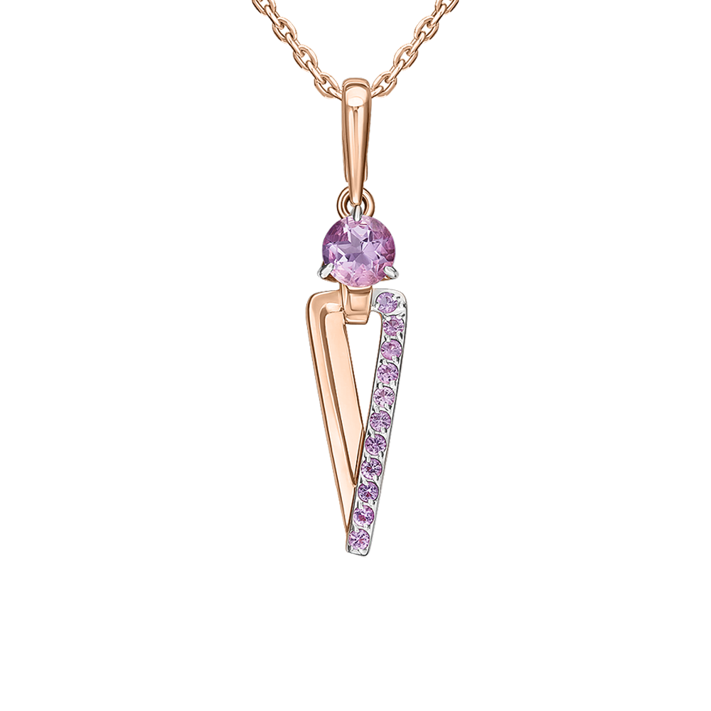 Der Anhänger mit Amethyst aus Gold von 585 Wert kann dem Bild einer Frau oder eines Mädchens einen besonderen Reiz verleihen. Und der erschwingliche Preis ermöglicht es Ihnen, eine ganze Sammlung von verschiedenen Modellen für alle Gelegenheiten und Anlässe zu sammeln. Es gibt keinen solchen Vertreter des schönen Geschlechts, der solchen Schmuck gleichgültig bleiben wird. Expressive und raffinierte Anhänger aus Rotgold geben Edelmetall und eingebetteten Steinen Energie.