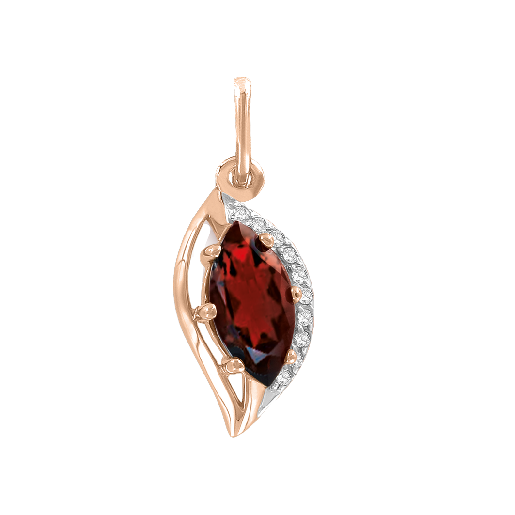 Anhänger mit Granat und Zirkonia aus Gold 585° - ist in der Lage, das Bild einer Frau oder eines Mädchens einen besonderen Reiz zu verleihen. Und der erschwingliche Preis ermöglicht es Ihnen, eine ganze Sammlung von verschiedenen Modellen für alle Gelegenheiten und Anlässe zu sammeln. Es gibt keinen solchen Vertreter des schönen Geschlechts, der solchen Schmuck gleichgültig bleiben wird. Expressive und raffinierte Anhänger aus Rotgold geben Edelmetall und eingebetteten Steinen Energie.