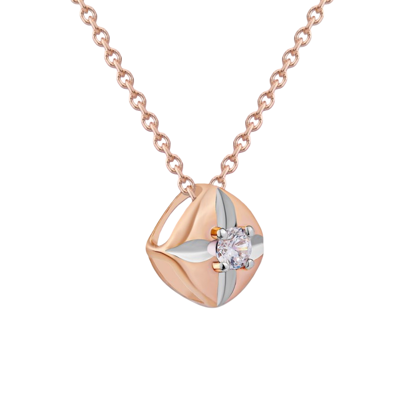 Dieser bezaubernde Schiebeanhänger ist aus rotem 585er Gold gefertigt und mit eleganten Akzenten aus weißem Gold sowie einem funkelnden Zirkonia verziert. Sein zartes Design unterstreicht auf stilvolle Weise Weiblichkeit, Anmut und natürliche Schönheit. Ein solches Schmuckstück ist ein liebevolles Geschenk, das Gefühle ohne Worte ausdrückt.