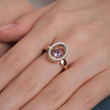 Rotgold 585° Damenring mit Amethyst, Zirkonia