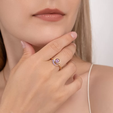 Damenring aus Rotgold mit Amethyst ist eine perfekte Komponente für das Bild einer stilvollen, modernen Frau, die ihren Stil ändern möchte, ohne rauschhafte Blicke zu fürchten. Amethyst eignet sich für Frauen jeden Alters und besonders für diejenigen, die das einzigartige Design und die Raffinesse der Linien schätzen. Rotgold ist ein echter Klassiker der Schmuckherstellung, der zu jeder Zeit relevant sein wird. Wie es auch heißt, Rotgold, ist es für jeden Anlass des Lebens geeignet - für den Alltag und für einen besonderen Ausflug oder ein teures Restaurant.