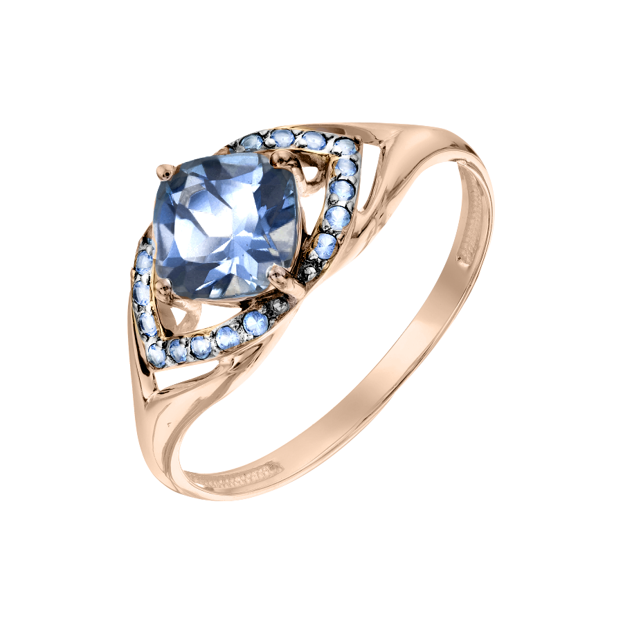 Ring mit blauem Topas und Zirkonia aus roten Gold von 585° - eine idealen Ergänzung des Bildes von einer stilvollen, modernen Frau, die die Bilder verändern mag, und scheut sich nicht, anders zu sein. Ausdrucksstark und raffiniert ist der Ring für Frauen jeden Alters geeignet, die das interessante Design und die ausgeprägte Energie der Steine zu schätzen wissen. Rotgold, das im Westen schön Rosa oder Erdbeere genannt wird, ist ein ewiger Klassiker, der immer und überall relevant ist, sei es im Alltag oder in einem feierlichen Auftritt.
