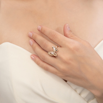 Der Damenring aus 14 Karat Rot- und Weißgold ist das perfekte Finish für das Aussehen einer stilvollen und modernen Frau, die ihren Stil gerne verändert, ohne sich um bewundernde Blicke zu kümmern. Der elegante Ring passt Frauen jeden Alters, insbesondere denen, die einzigartiges Design und die Feinheit der Linien schätzen.