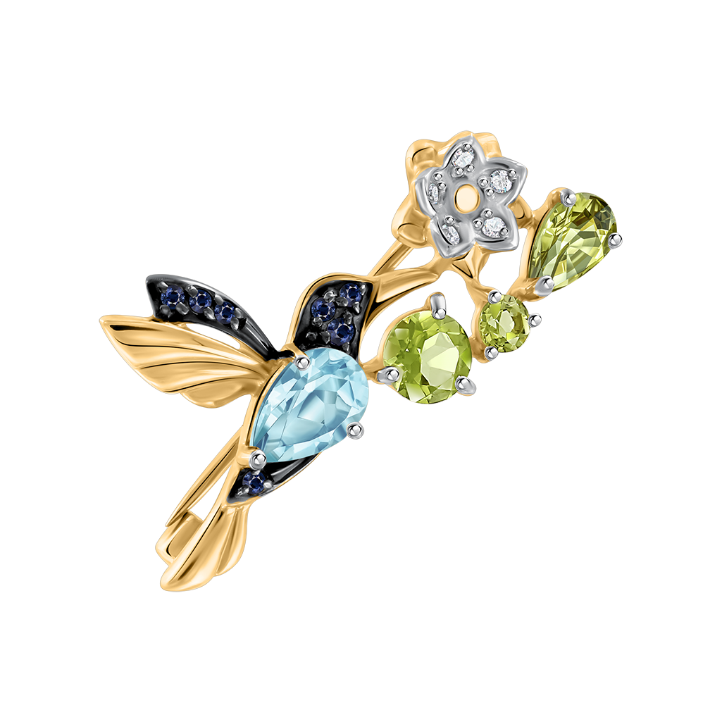 Brosche aus Gelbgold 585 Mit Topas, Chrysolith und Zirkonia