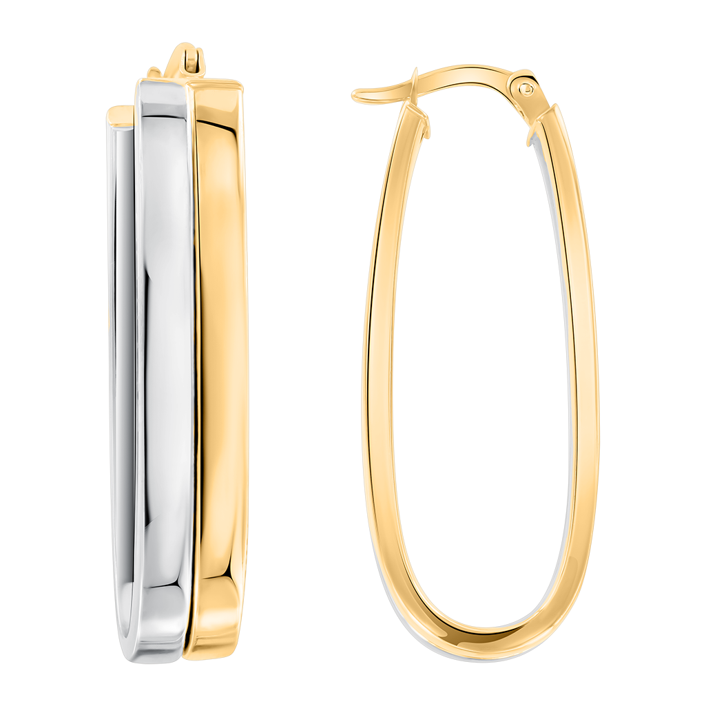 Diese exquisiten Ohrhänger aus Gelb- und Weißgold 585 verbinden zwei edle Goldtöne zu einem harmonischen und modernen Design. Mit einer Breite von ca. 5 mm und einer Höhe von ca. 34 mm bieten sie eine stilvolle Mischung aus Eleganz, Raffinesse und angenehmem Tragekomfort.
