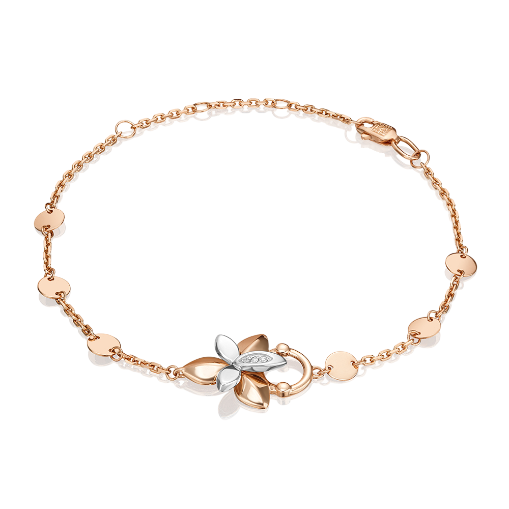 Armband aus russischem Rot- und Weißgold 585 mit Brillanten