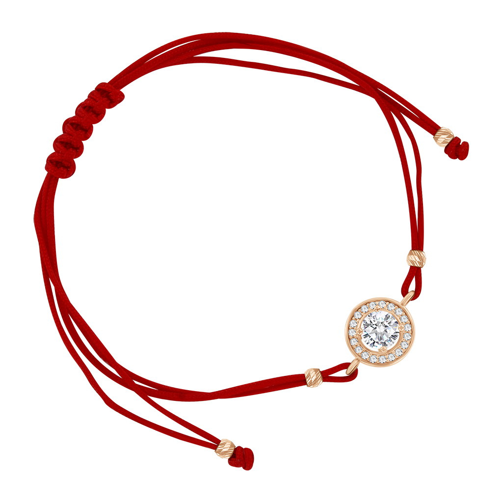 Mit russischem Rotgold 585, roter Schnur & Zirkonia