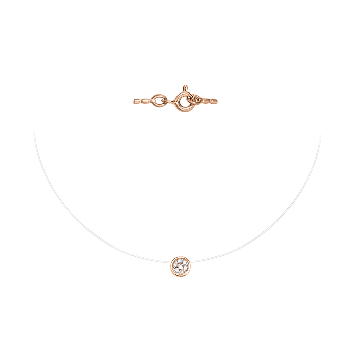 Unsichtbare Halskette mit Goldanhänger aus russischem Rotgold 585 und 7 Brillanten (0,045 ct GSI)