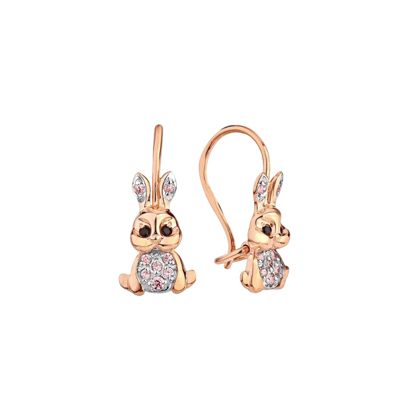 Diese wunderschönen Ohrringe aus edlem russischem Rot- und Weißgold (585er Feingehalt) bezaubern durch ihr fröhliches, kindgerechtes Design und die elegante Kombination aus pinkfarbenen und schwarzen Zirkonia. Sie sind ein wahres Schmuckstück für kleine Prinzessinnen, das Glanz, Freude und Stil vereint.