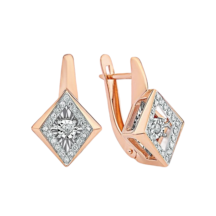 Der tanzende Diamant ist ein charmantes Paar Ohrringe aus russischem Weiß- und Rotgold 585er mit funkelnden Diamanten und einem tanzenden Diamanten vor einem weißen Goldhintergrund mit Diamant-Schliff! Diese Ohrringe sind ein elegantes Geschenk für Ihre Liebste, das mit der Zeit wertvoll bleibt.