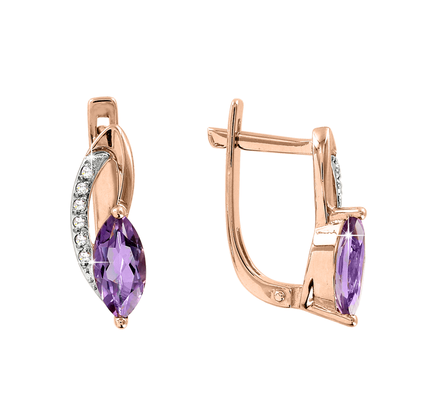 Elegante Ohrringe aus Weiß- und Rotgold 585 mit Diamanten und Amethysten