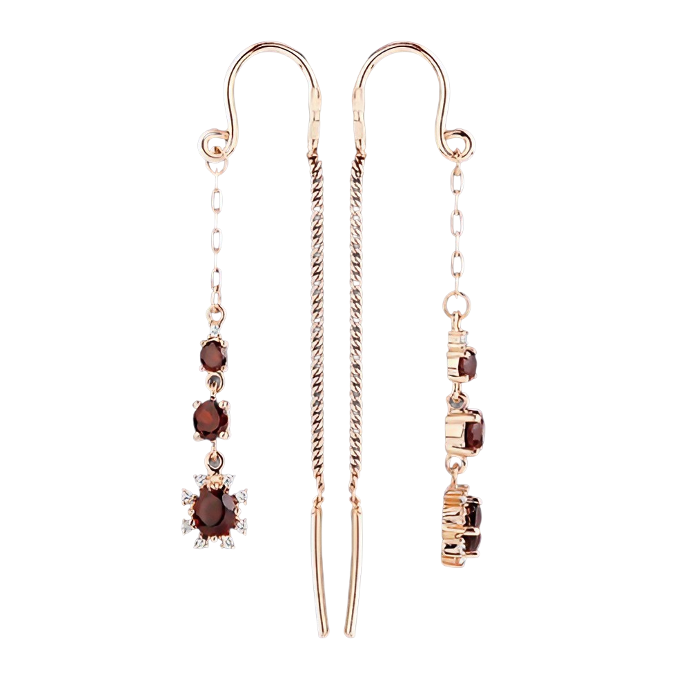Elegante Ohrringe aus russischem Rotgold 585 mit Granaten & Zirkonia