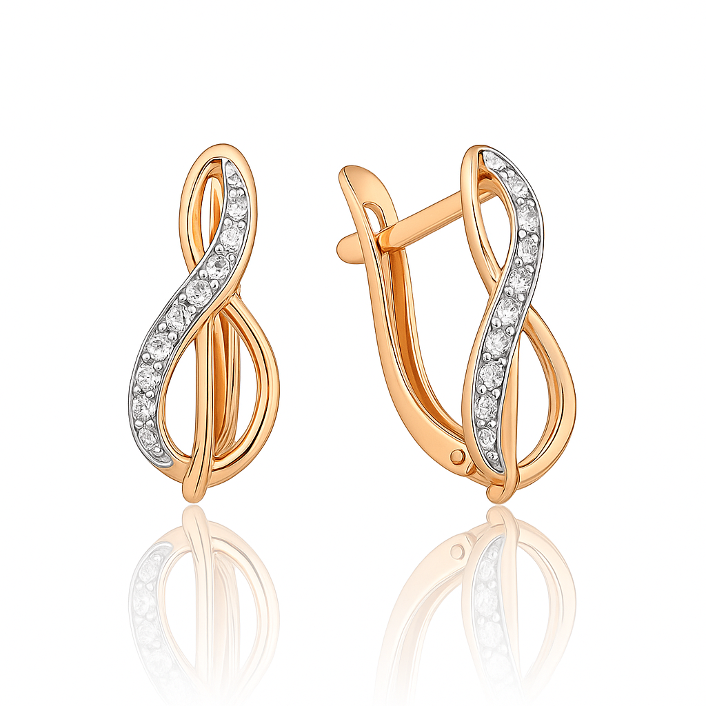 Elegante Rotgold 585 Ohrringe mit Zirkonia im geschwungenen Design