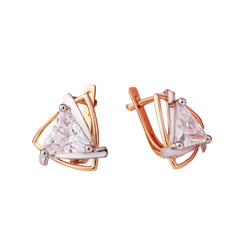 Feminine, elegante Ohrhänger aus Rotgold, verziert mit funkelnden Zirkonia auf einem Hintergrund aus Weißgold. Diese Ohrringe unterstreichen Ihre Eleganz und Weiblichkeit und ziehen bewundernde Blicke auf sich.