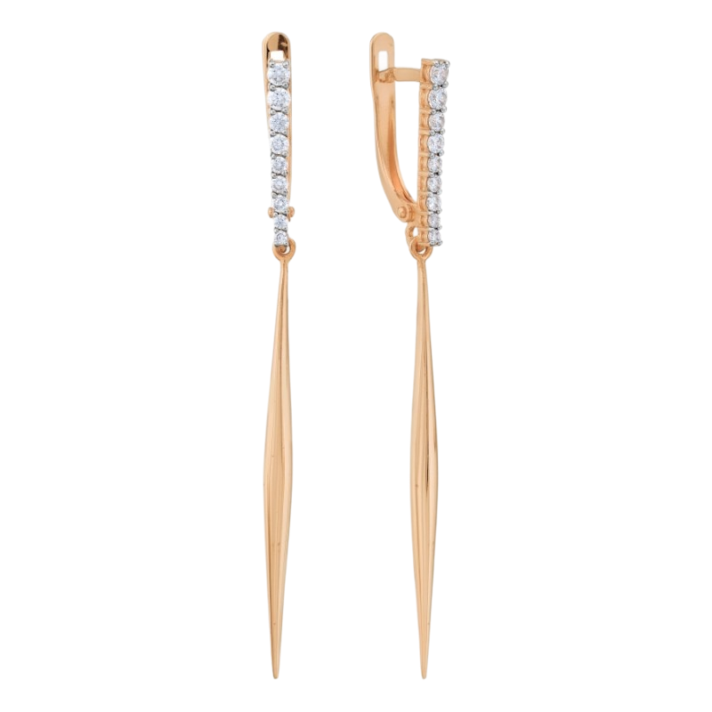 Feminine, elegante Ohrhänger aus Rotgold, verziert mit funkelnden Zirkonia auf einem Hintergrund aus Weißgold. Diese Ohrringe unterstreichen Ihre Eleganz und Weiblichkeit und ziehen bewundernde Blicke auf sich.