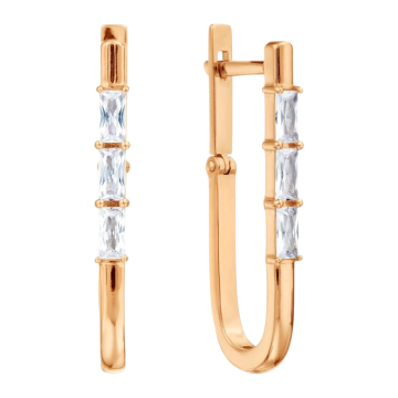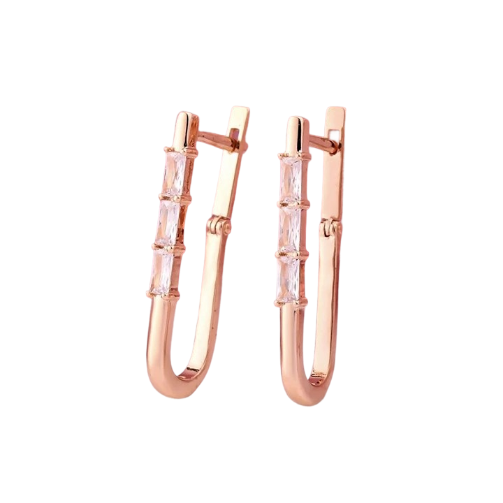 Feminine, elegante Ohrhänger aus Rotgold, verziert mit funkelnden Zirkonia auf einem Hintergrund aus Weißgold. Diese Ohrringe unterstreichen Ihre Eleganz und Weiblichkeit und ziehen bewundernde Blicke auf sich.