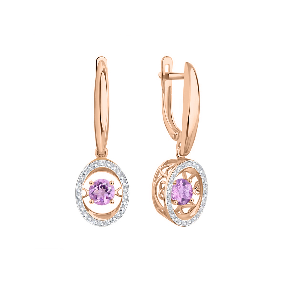 Ohrringe aus Rotgold 585° mit Amethyst und Zirkonia waren immer auf der ganzen Welt beliebt. Es ist schwer sich eine Frau vorzustellen, die nicht von solchem Schmuck träumt. Richtig ausgewählte Ohrringe unterstreichen die natürliche Schönheit ihrer Besitzer. Und das Glitzern von Rotgold wird das Bild beenden, weshalb Mädchen und Frauen diesen edlen Metallton schon immer geschätzt und geliebt haben. Wenn Sie keine Ausnahme sind, können Sie auf den Seiten unseres Online-Shops Ohrringe für jeden Geschmack auswählen.