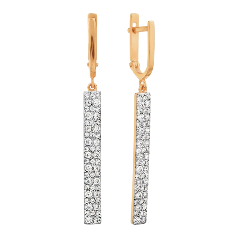 Diese wunderschönen Ohrringe sind aus rot- und weißem russischem Gold 585 gefertigt und mit glänzenden Zirkonen geschmückt – Steinen, die Bescheidenheit und Luxus miteinander vereinen. Zirkon, dank seiner Herkunft, erinnert an Diamanten sowohl in der Farbe als auch im transparenten Glanz und erzeugt einen unglaublich attraktiven und funkelnden Effekt. Diese Steine sind in verschiedenen Farbtönen erhältlich, und ihre zarten Farben können jeden verzaubern. In Kombination mit dem warmen Glanz des Goldes verwandeln sie sich in ein wahres Meisterwerk und schaffen eine unverwechselbare Harmonie.