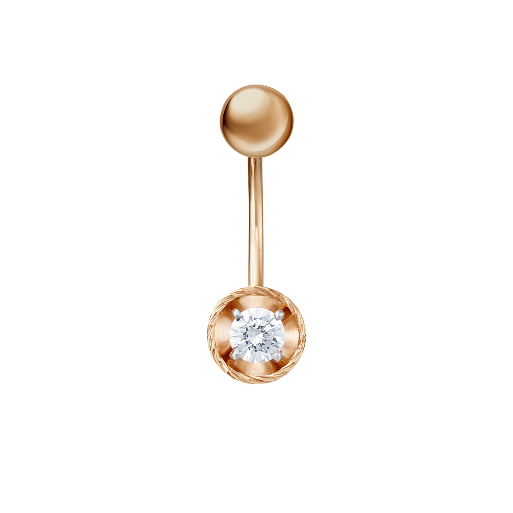 Piercing für Bauchnabel mit Zirkonia ist ein anmutiges Accessoire für Körperschmuck, das in der modernen Welt absolut vertraut geworden ist. Piercings erregen Aufmerksamkeit, betont die Eleganz des Körpers und verleiht dem Bild einen besonderen Charme. Ein wunderschöner raffinierter Ohrring wird perfekt einen flachen Bauch schmücken.