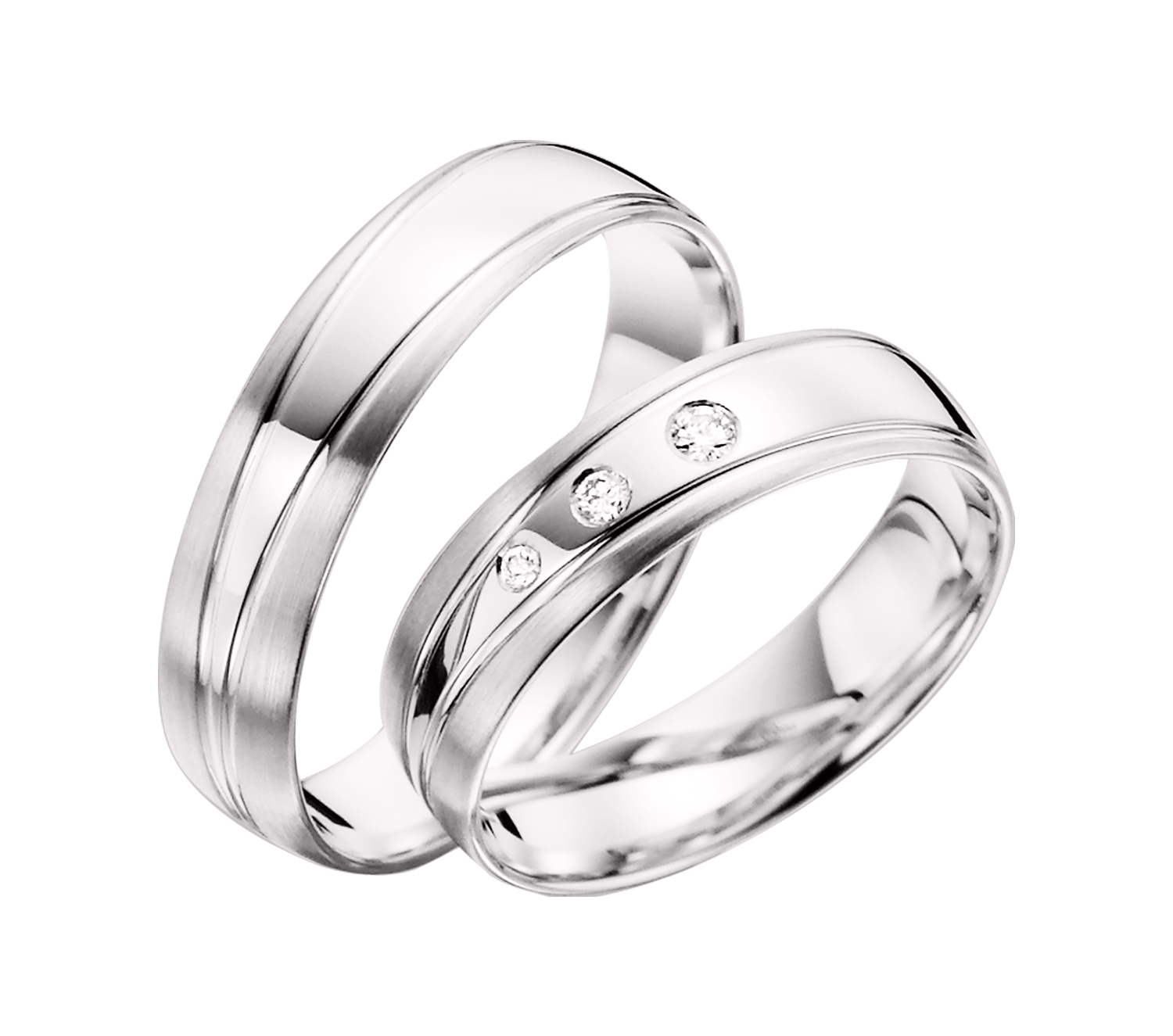 Breite ca. 5,0 mm (Abb. Links). R136V1/TR mit Brillanten 0,06 ct., Breite ca. 5,0 mm (Abb. Rechts). / Preis für je 1 Ring.