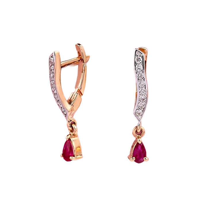 Elegante Ohrringe aus russischem Gold mit Diamanten und Rubin